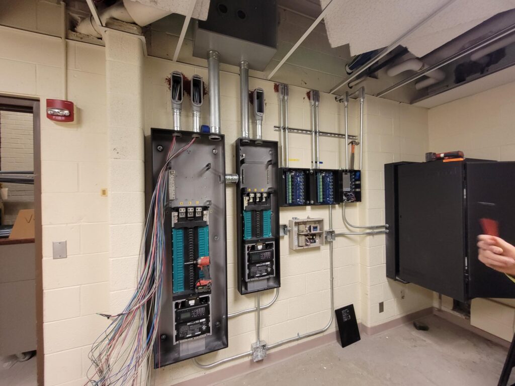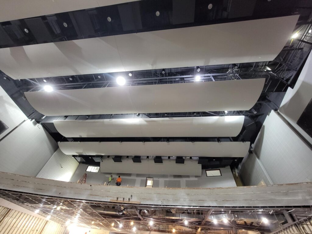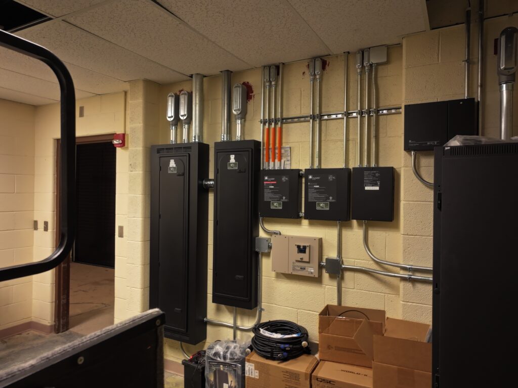 Our team provided key electrical upgrades to support this revamp, including new theatrical and house lighting installations, electrical connections for air handling equipment, and fire alarm system updates. We also installed conduit and infrastructure for the AV systems to support cutting-edge audio and video. The result is a dramatically enhanced performance space featuring LED house lighting, optimized acoustics, and professional-grade audiovisual capabilities.